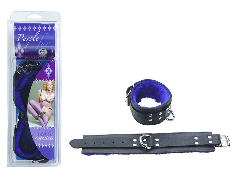 SKU: BSPL-08C2PClassic black leather ankle restraints lined with purple faux fur. Adjusts 7" - 10".